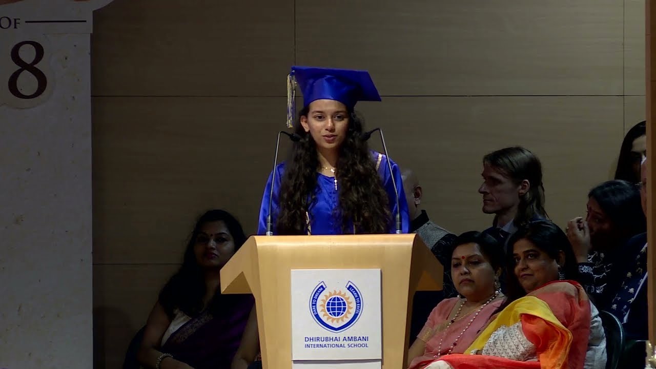 Head Girl Aashna Sundesha, DAIS addressing the audience at the graduation ceremony, class of 2018