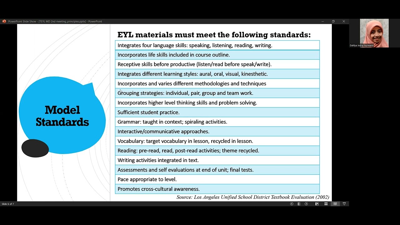 Model standards of EYL materials